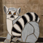 Ken’s 16″ x 11″ framed stained glass piece depicts a ring-tailed lemur mother and baby.